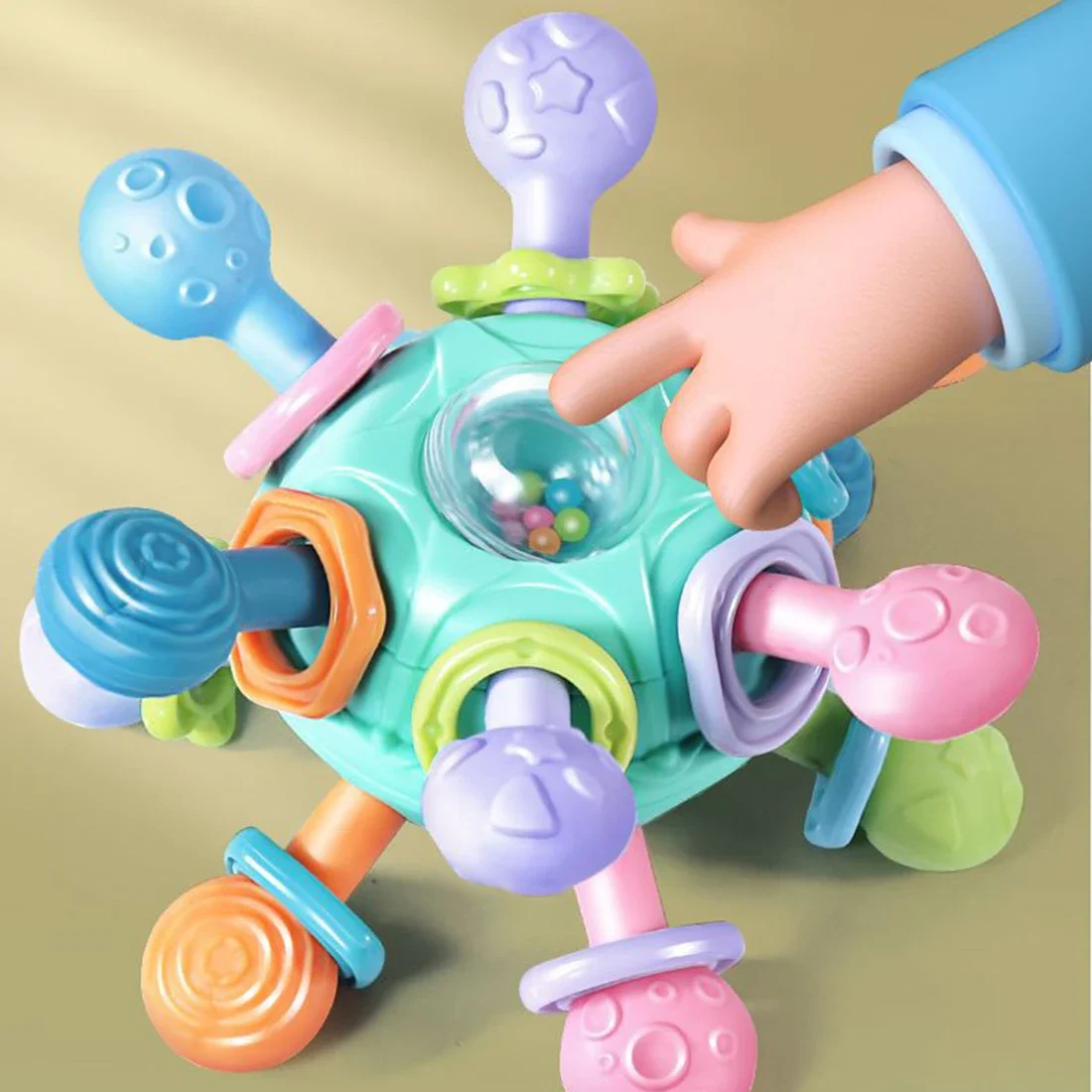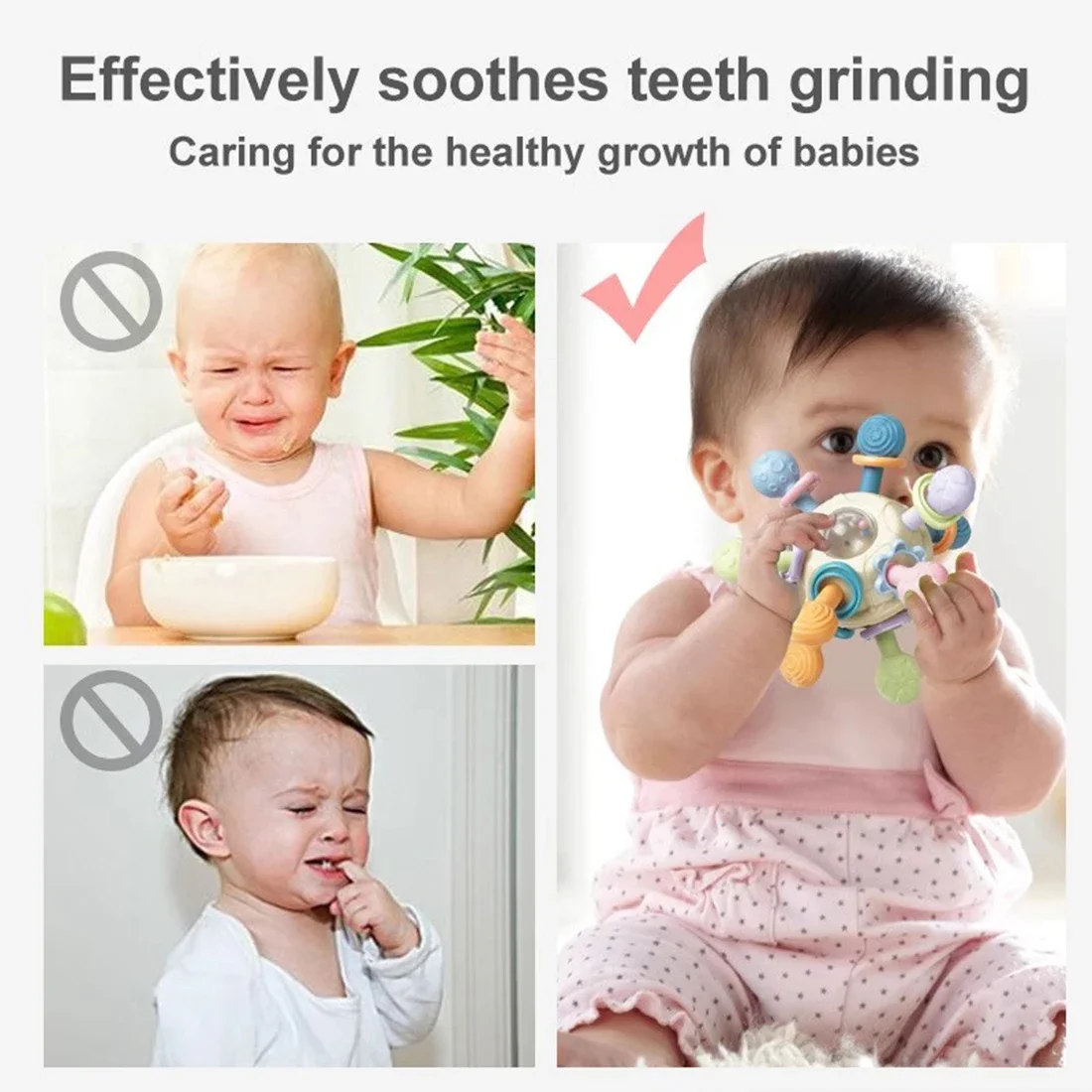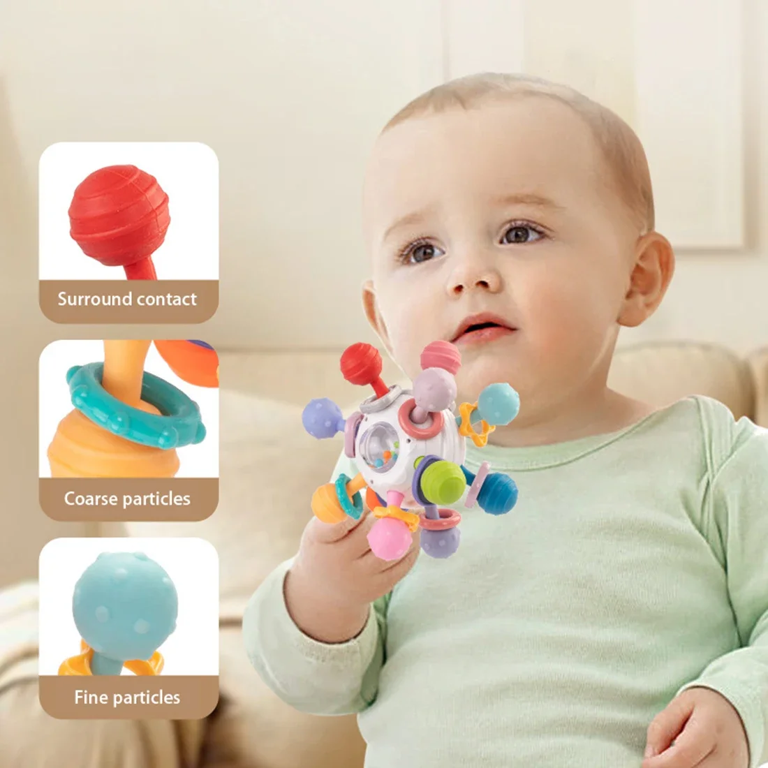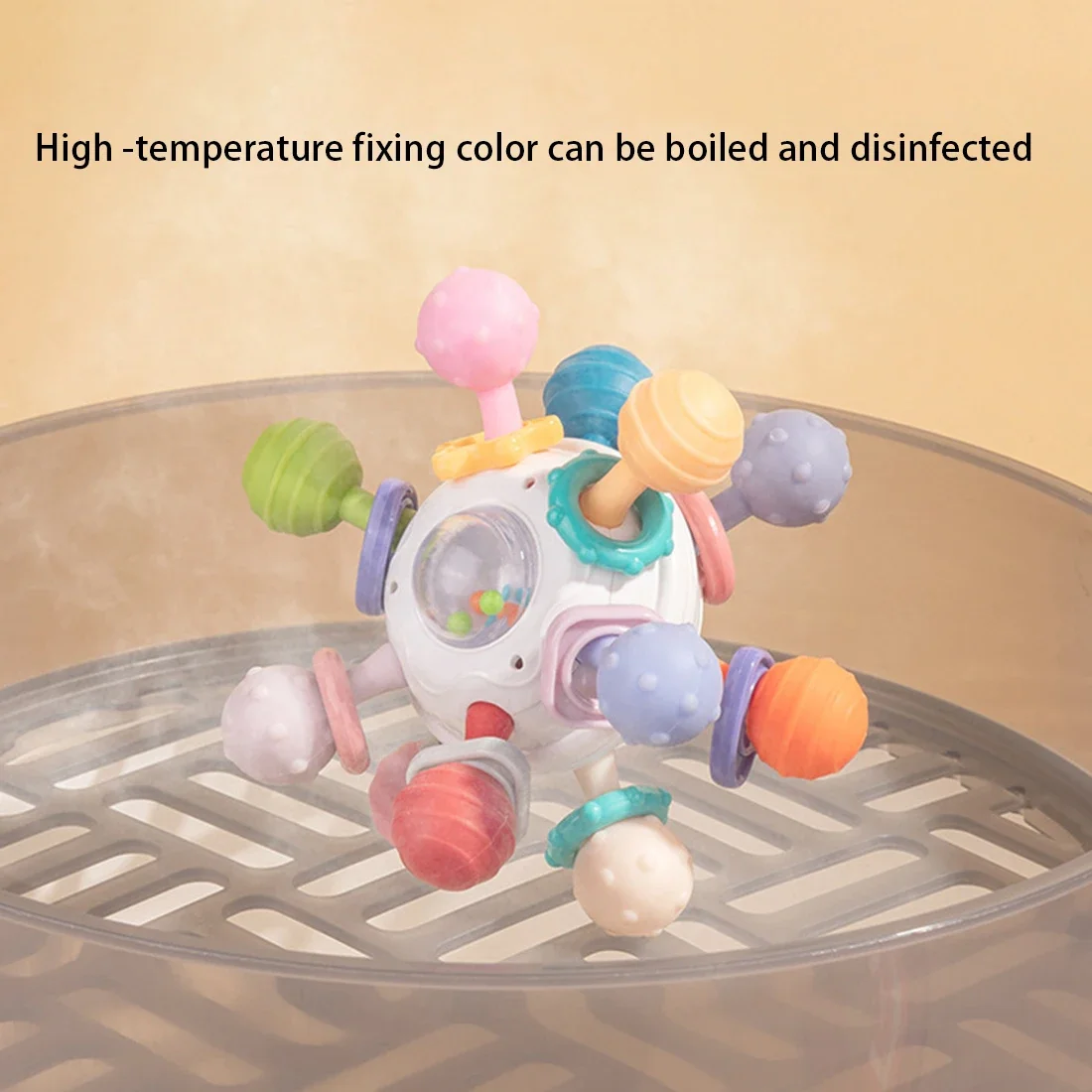 【تجذب انتباه الأطفال】هذه اللعبة الحسية للأطفال ستبقي الأطفال مشغولين أثناء السفر والاستحمام والأكل.ألعاب مضغ الأطفال تبقي يدي الطفل أثناء التنقل بينما يساعد صوت الخشخشة الناعم على ترفيه الطفل.