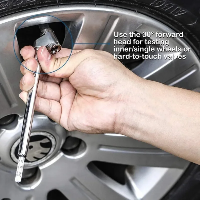 يدخل الضغط إلى فوهة الهواء، ويمكن قياس ضغط الإطارات.