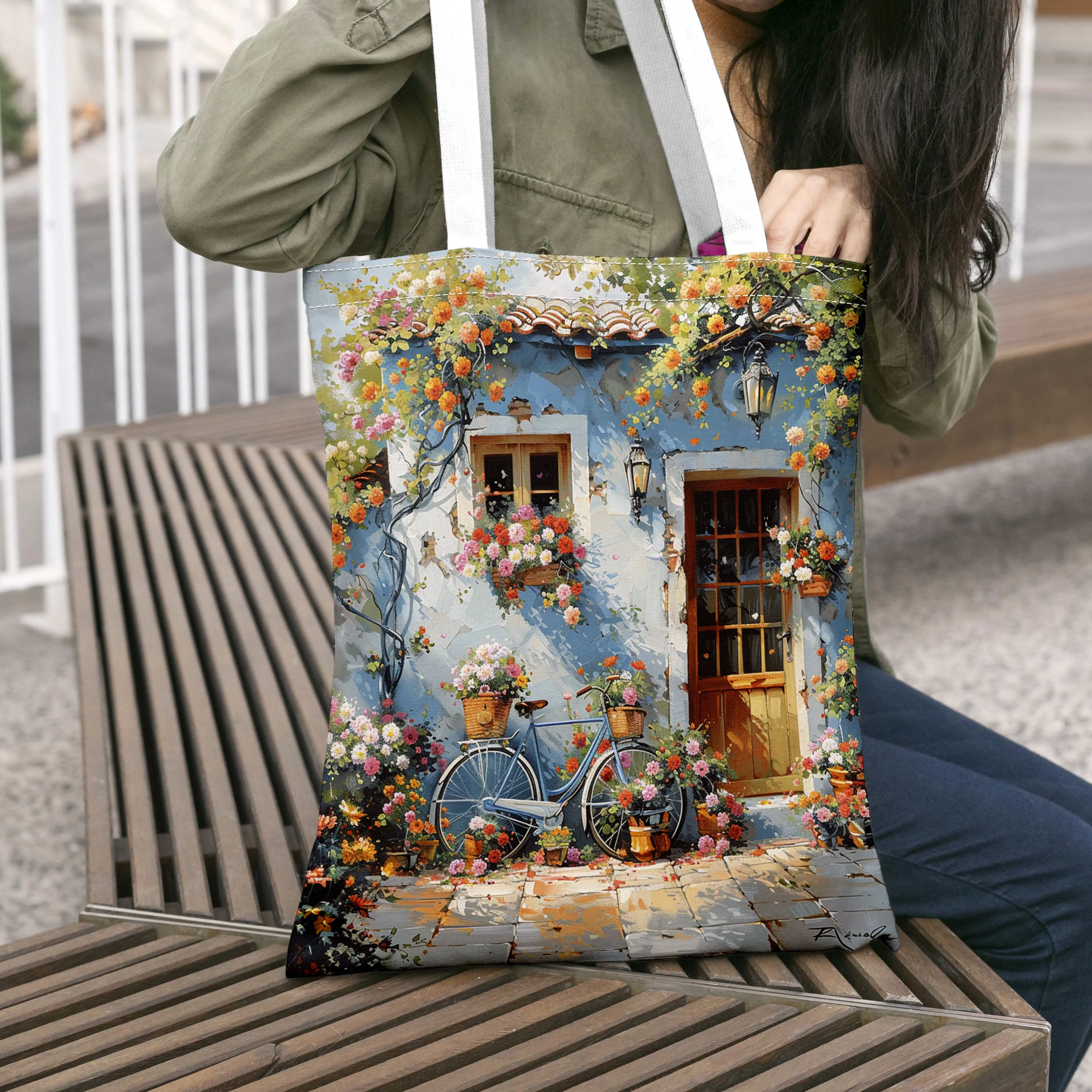 تخيلي نفسكِ في صباح يوم مشمس. الهواء عليل ورائحة القهوة تفوح في الأجواء. أنتِ مستعدة للانطلاق، روحكِ مليئة بالحياة. تحتاجين شيئاً يرافقكِ في مغامراتك اليومية، شيئاً يعكس ذوقكِ الرفيع وأناقتكِ العصرية. هذه الحقيبة ليست مجرد وعاء لحاجياتك. إنها تعبير عن شخصيتكِ، امتداد لأحلامك. قماشها لطيف الملمس، يحمل بين طياته رسومات دراجات ريفية تذكركِ ببساطة الحياة وجمال الطبيعة. يمكنكِ أن تحمليها إلى السوق، لتملئيها بالخضراوات الطازجة والفاكهة الشهية. يمكنكِ أيضاً اصطحابها إلى المكتبة، لتضعي فيها كتابكِ المفضل ودفتر ملاحظاتك. هي رفيقة مثالية في نزهاتكِ الصباحية، تسع كل ما تحتاجينه لتستمتعي بلحظات هادئة في أحضان الطبيعة. خفيفة الوزن، سهلة الحمل، عملية وأنيقة. ستكون إضافة مميزة إلى مجموعتكِ، قطعة فريدة تعكس روحكِ المتفائلة. تذكري دائماً أن الجمال يكمن في التفاصيل الصغيرة. أتمنى لكِ يوماً مليئاً بالسعادة والإلهام