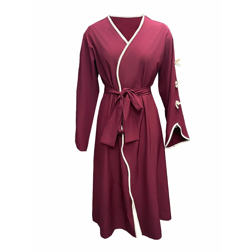 ربطة عنق عصرية جديدة في الشرق الأوسط، رداء عربي طويل بلون سادة، فستان كاجوال ناعم ومريح مع حزام