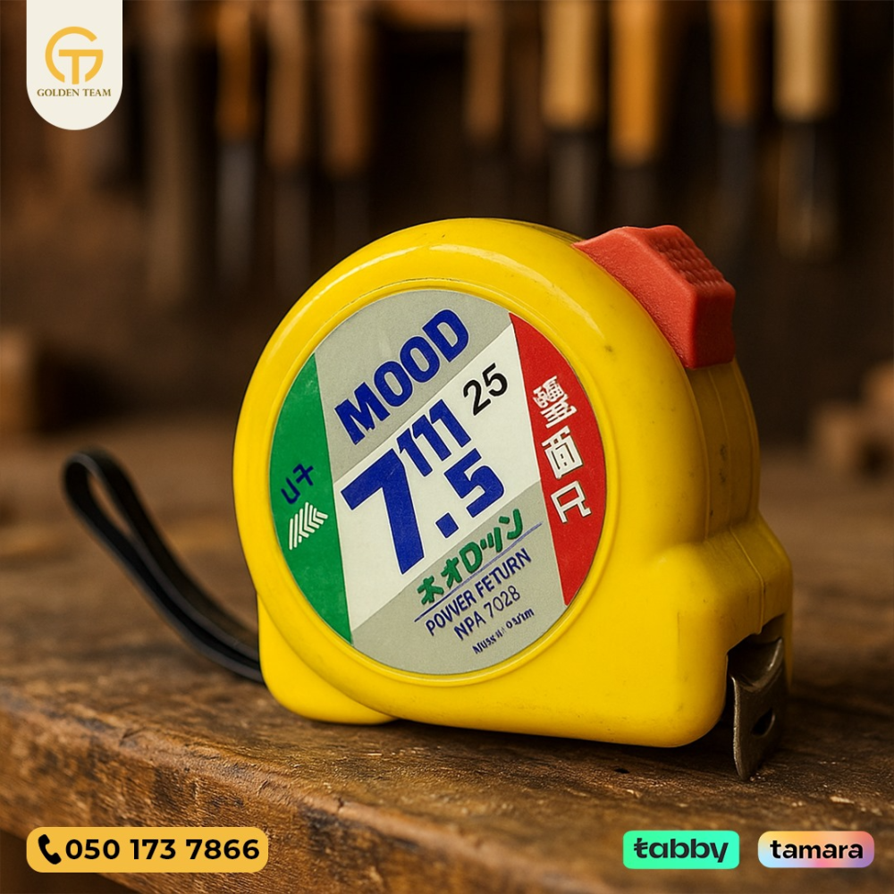 متر قياس لتحقيق أعلى درجات الدقة في كل قياس، الأداة المثالية للمهنيين والهواة في أعمال البناء، النجارة، والديكور.