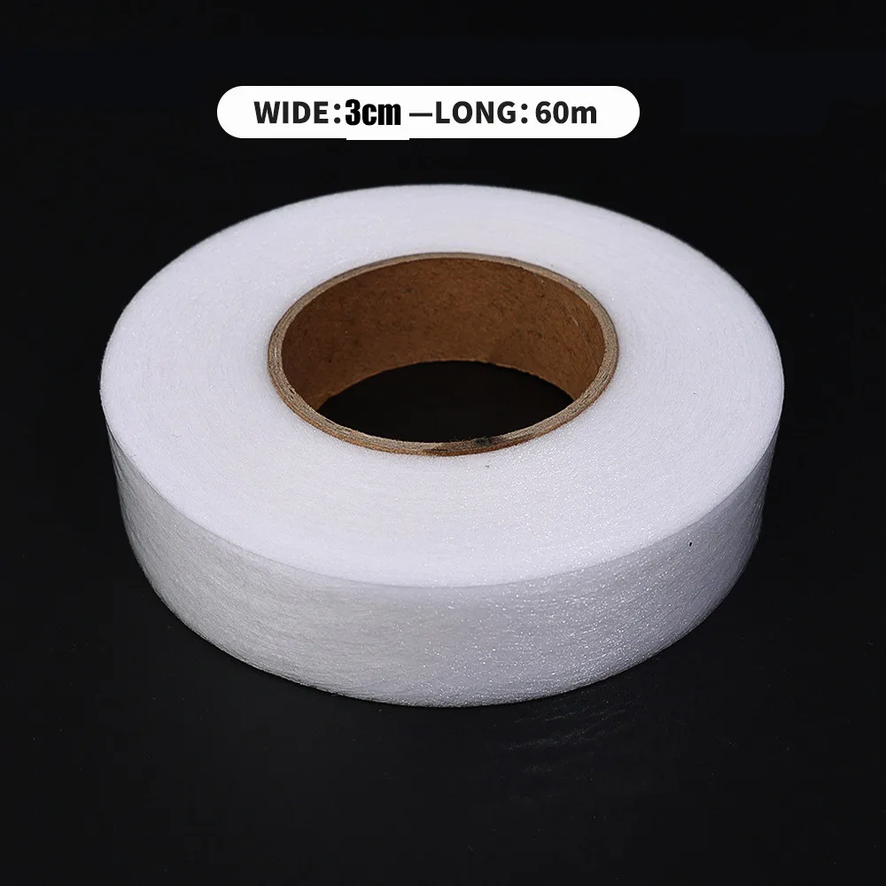 ببساطة، قص الشريط على الطول اللي تبغاه، حطه بين القماش اللي تبي تلصقه، ومرر المكواة عليه. خلاص!