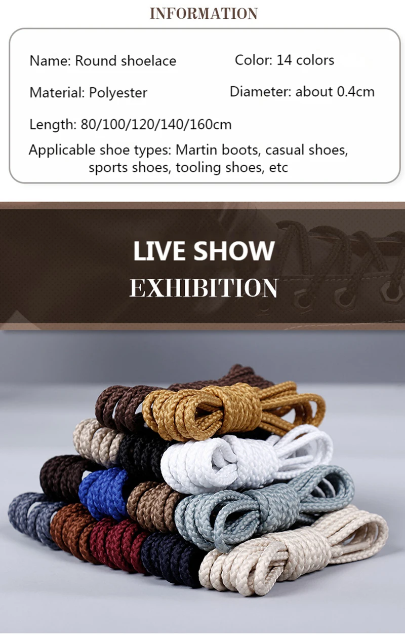 زوج أربطة أحذية مستديرة لأحذية مارتن أحذية رياضية أربطة الحذاء أحذية صلبة رباط الحذاء النسيج الصلب مقاومة للاهتراء