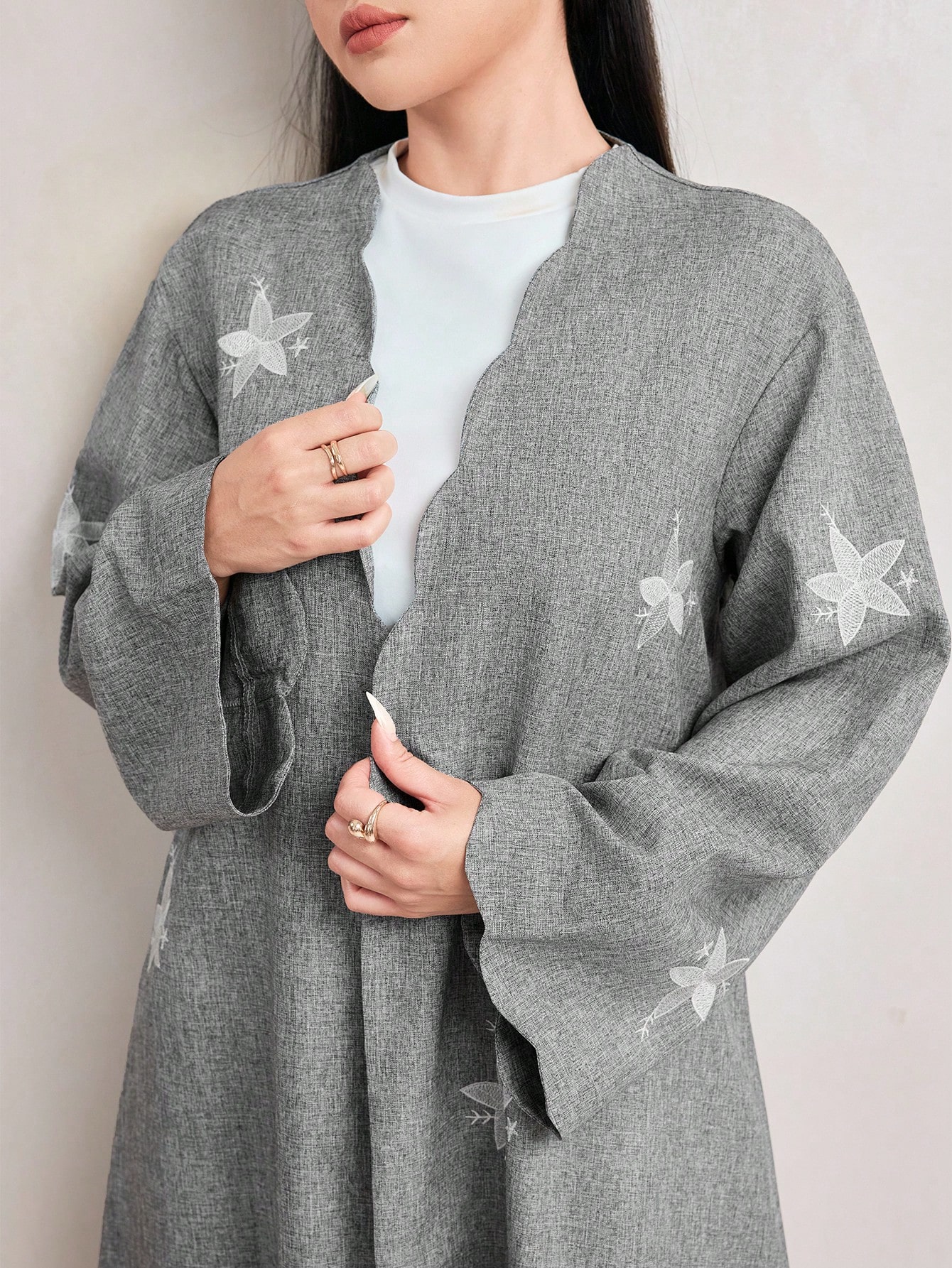 Veilorie عباءة عربية فضفاضة مريحة مطرزة بزخارف زهرية مع حافة متموجة