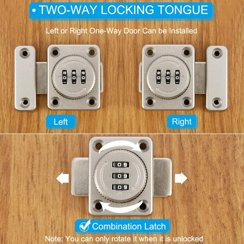 يتميز هذا القفل المذهل بإمكانية تركيبه في أي اتجاه، سواء لليمين أو لليسار، للأعلى أو للأسفل، مما يجعله مناسبًا لجميع أنواع الأبواب والخزائن.