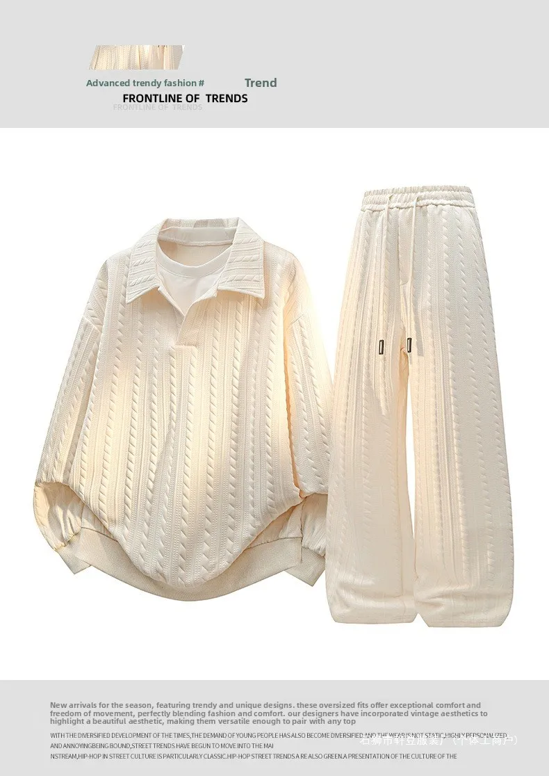 This loose sweatshirt set features a timeless 'old money' aesthetic, perfect for both men and women, making it an ideal choice for couples.